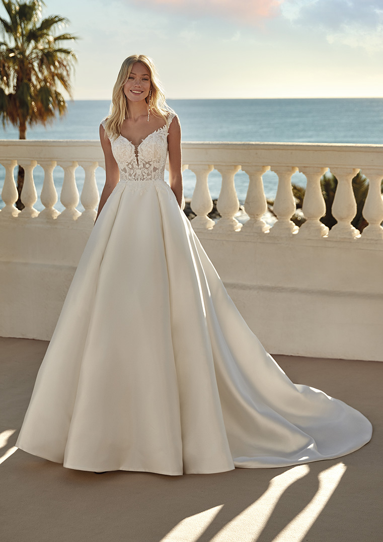 Robe de mariée Princesse, mikado , tulle, dentelle, bretelles.